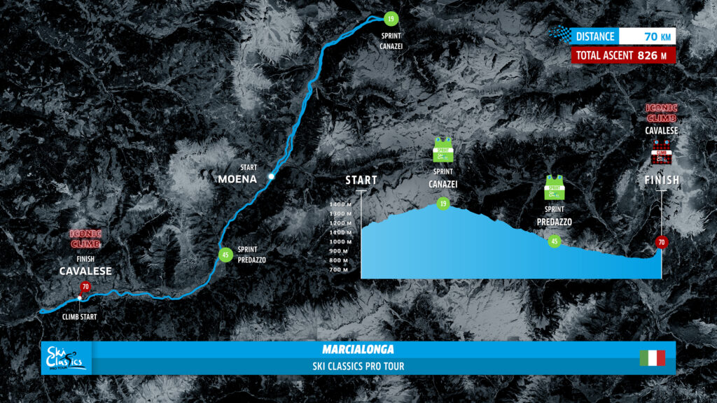 “Athletes look forward to this classic event with something extra,” says Ski Classics Director Oskar Svärd in a previous statement. “From the start in Moena to the iconic Cascata climb and the finish in Cavalese, it is a true folkfest. This winter, the Olympic preparations may bring minor adjustments in the Lago area, but nothing that changes the character of Marcialonga.”