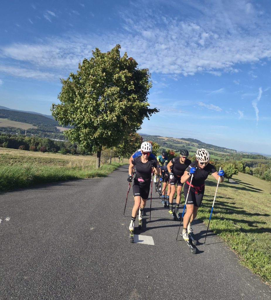 “On Thursday, we used the sports complex in Břízky, where we completed tough uphill intervals on roller skis. Friday brought a three-hour ride in the foothills of the Jizera Mountains, and in the afternoon, we focused on technique and proper execution of ski imitations. Saturday was dedicated to the Hamrskiroll roller ski race over 48 km in Hamr na Jezeře, organized by our team, where we took the top 5 places in the men’s category and the top 3 places in the women’s category. In the afternoon, we followed an easy jog around the Jablonec reservoir, and in the evening, we had a joint dinner with an open discussion about future plans. Sunday morning was devoted to four hours on roller skis, covering a beautiful 70 km loop.”