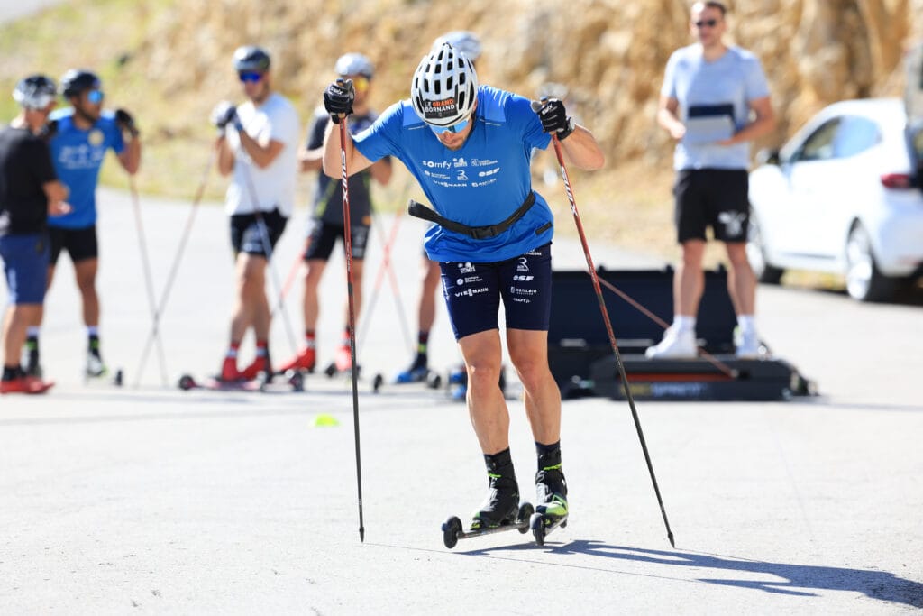In summer, specific speed training should be done on roller skis. Movement technique on roller skis closely matches that of snow skiing, although there’s a slightly reduced upper-body range in poling. It’s also important to be cautious at high speeds to avoid painful asphalt crashes.